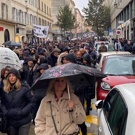 As you can see, this is more than just rioting or some bad actors. This is a huge amount of people calling the French state murderers and demanding Corsican independence: this is a full-on revolt within the French Republic. You could be forgiven for not having heard of this, I only happened to run into something on Twitter. [Sadly, this was exactly the sort of thing RT always provided great coverage of in the before time.] So what is going on? Why is Corsica on fire?