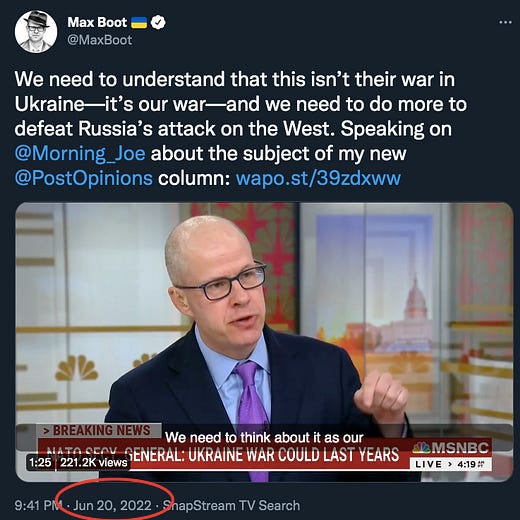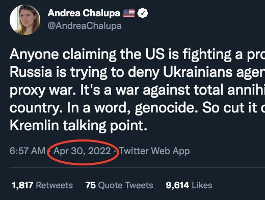 It is not my purpose here to round up the most humorously poorly aged Ukraine takes, so I will give you this quick reminder from March 4th and then move onto the meat of the article:
