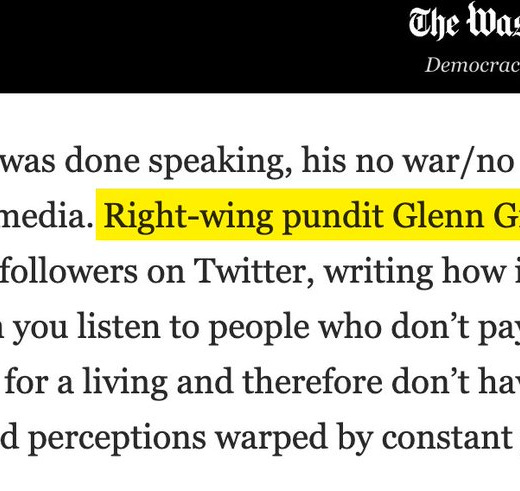 She seriously called Glenn Greenwald an “online influencer.” Like Greenwald is trying to sell us the nail polish he is wearing. This is the man who broke the Snowden story and prodigiously reported on the documents. His journalism over the years could probably fill a bookshelf. Real, quality journalism which actually challenges the powerful and exposes government secrets, not which harasses Jewish ladies from Brooklyn.